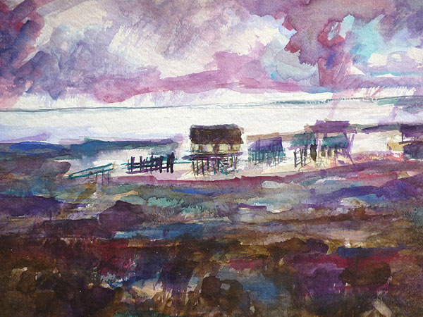 19WV976-Am-Strand-an-der-Nordsee-St-Peter-Ording-Aquarell-40x30-1995