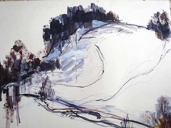 15WV925-Winterliches- Waldstueck-Oel-auf-Papier- 80x60-1982