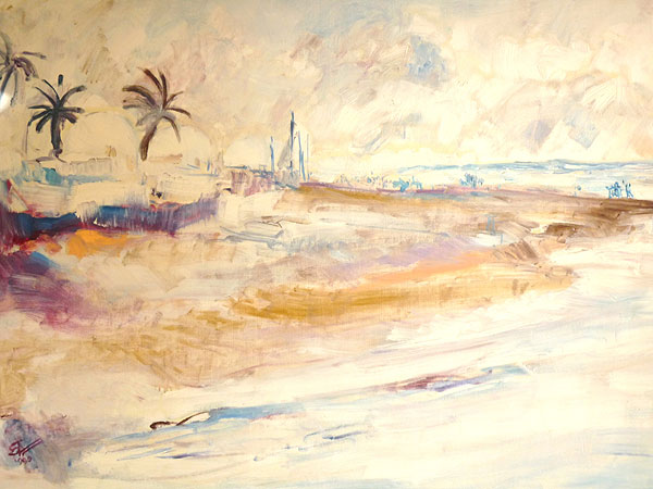 19WV847-Strand-Sidi-Mahres-Djerba-Oel-auf-Papier-56x42-1995