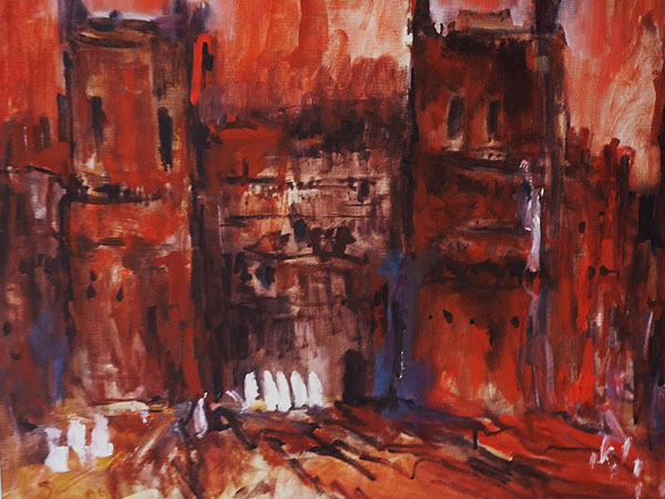 3WV453-Kasbah-im-Tal-des-Dra-Marokko-Oel-auf-Papier-50x40-1989