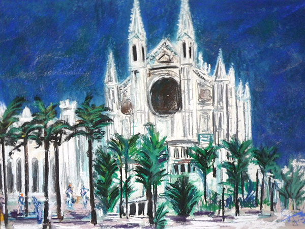 15WV502-Kathedrale-Palma-de-Mallorca-Pastell-61x43-1975